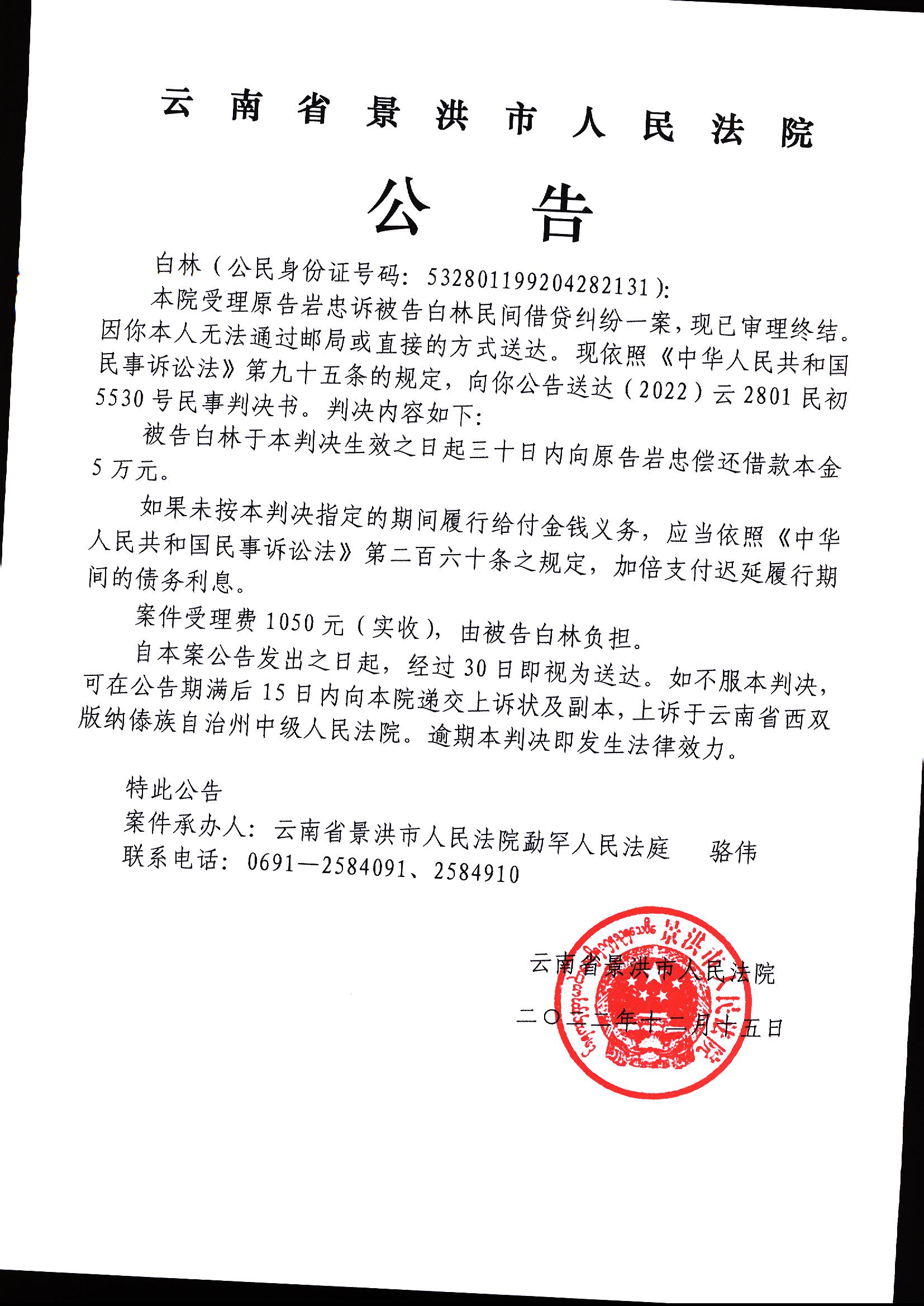 白林判决公告