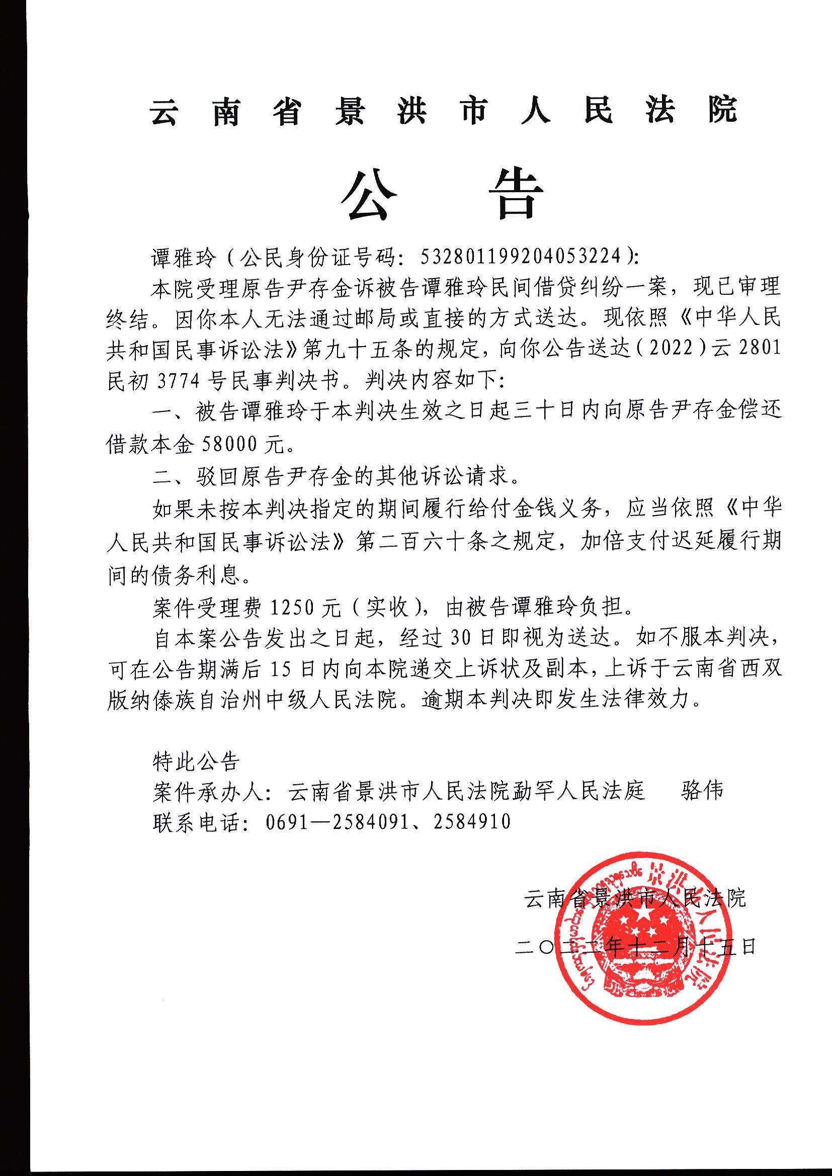 谭雅玲判决公告