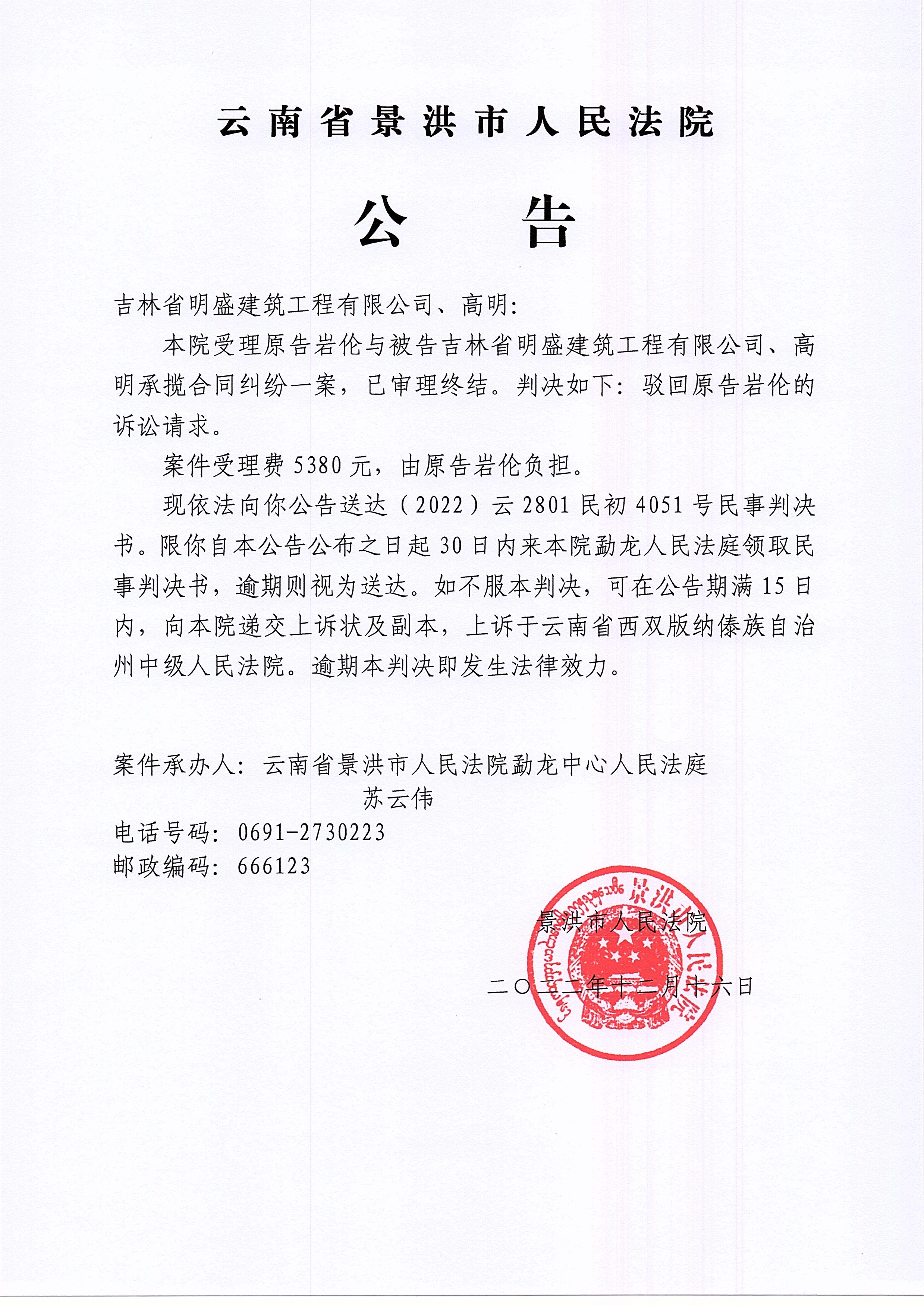 高明、吉林省明盛建筑工程有限公司(判决公告)