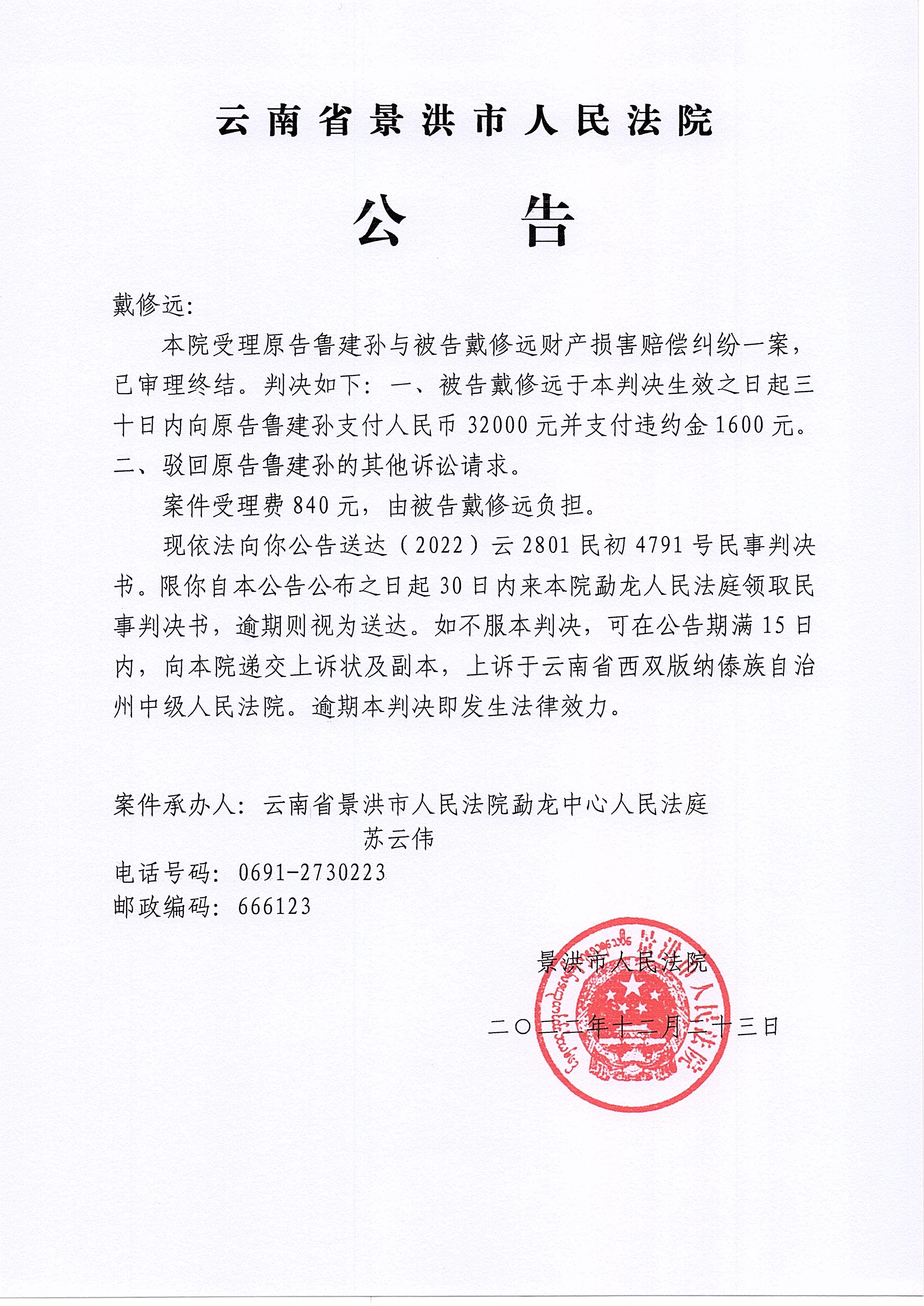 作者 :景洪市人民法院勐龙人民法庭 来源:本站原创 访问次数 :