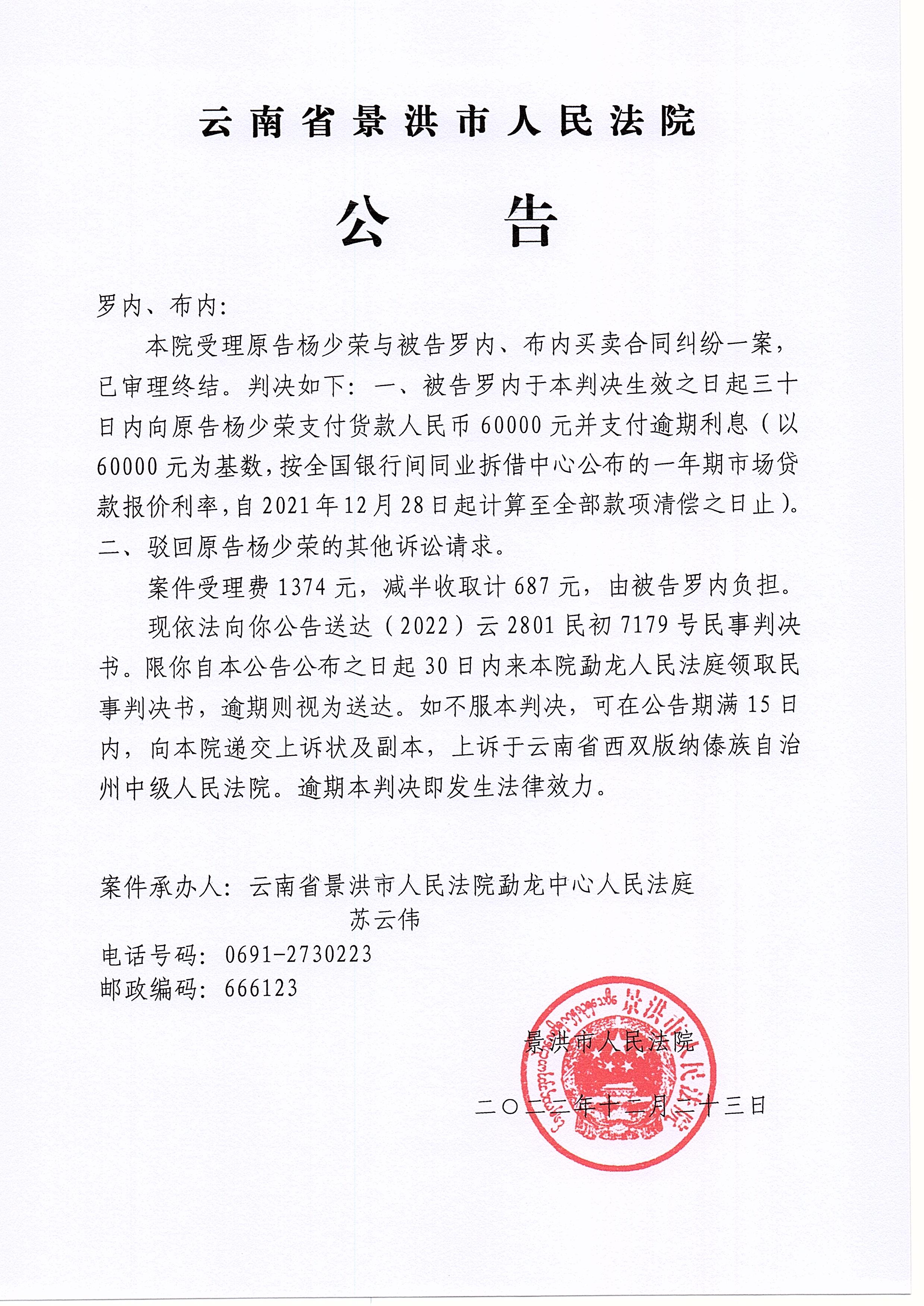 作者 :景洪市人民法院勐龙人民法庭 来源:本站原创 访问次数 :
