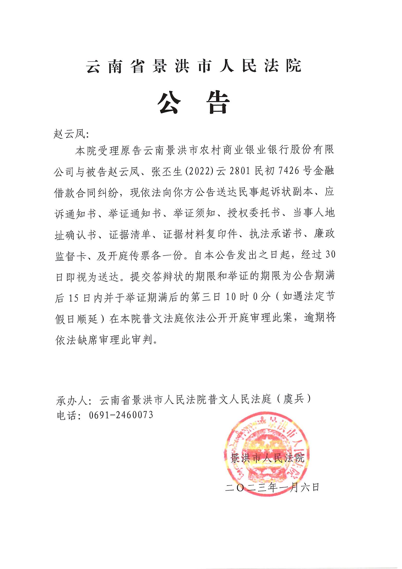 赵云凤开庭公告