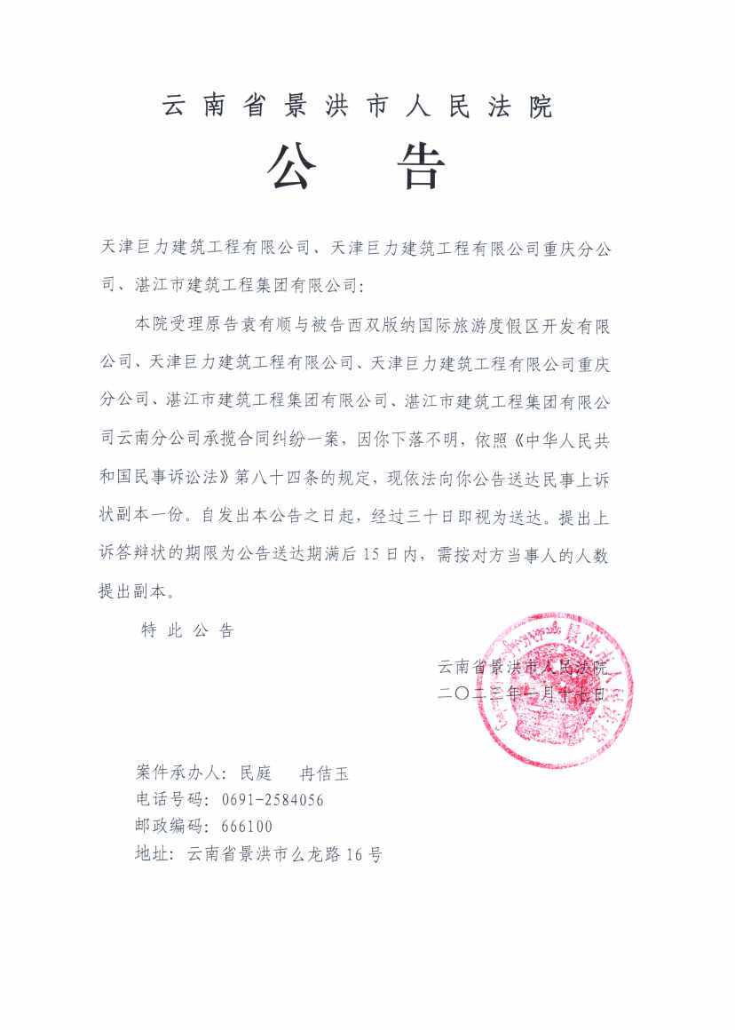 天津巨力建筑工程有限公司、天津巨力建筑工程有限公司重庆分公司、湛江市建筑工程集团有限公司(上诉公告