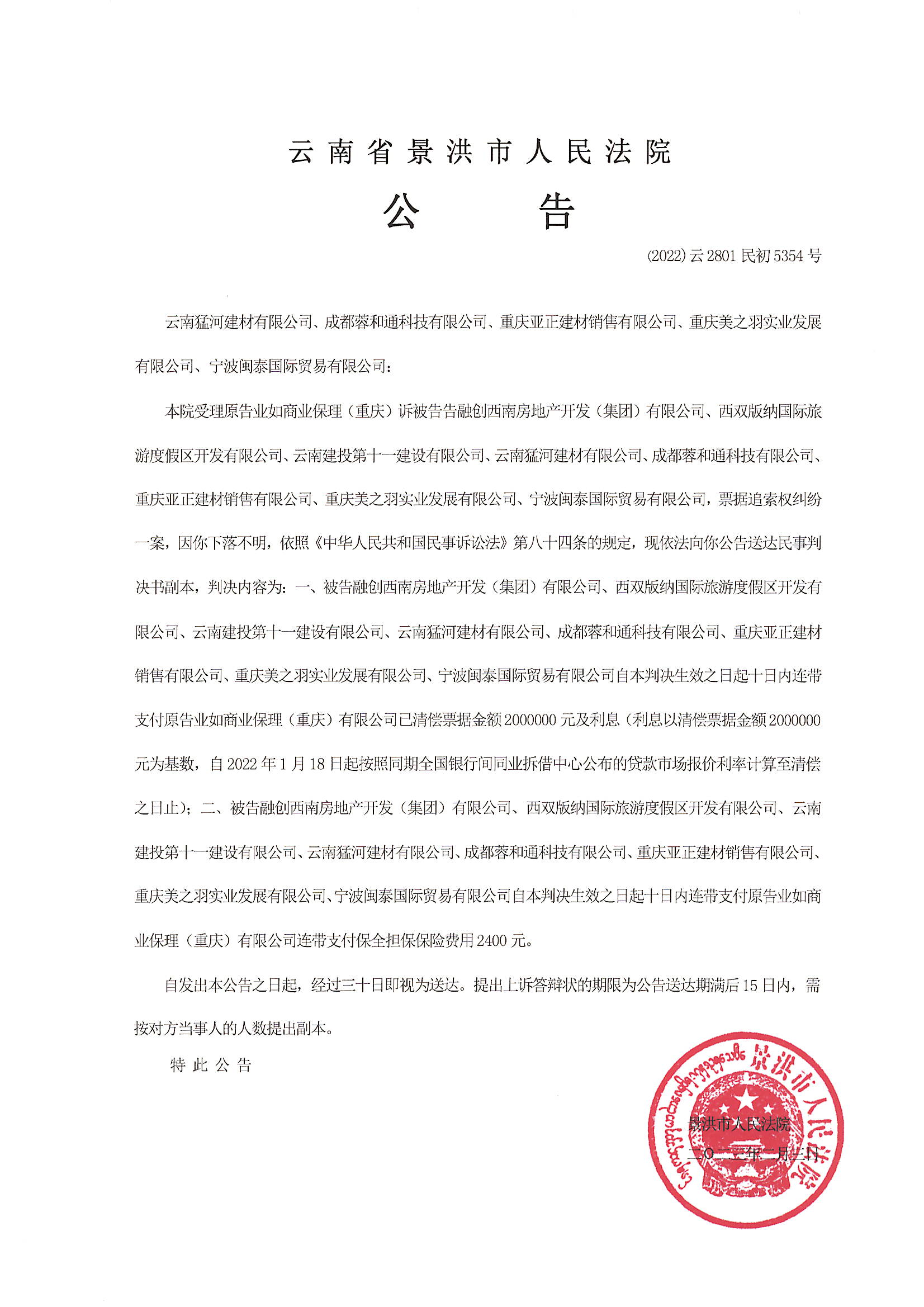 云南猛河建材有限公司、成都蓉和通科技有限公司、重庆亚正建材销售有限公司、重庆美之羽实业发展有限公司、宁波闽泰国际贸易有限公司(判决公告)