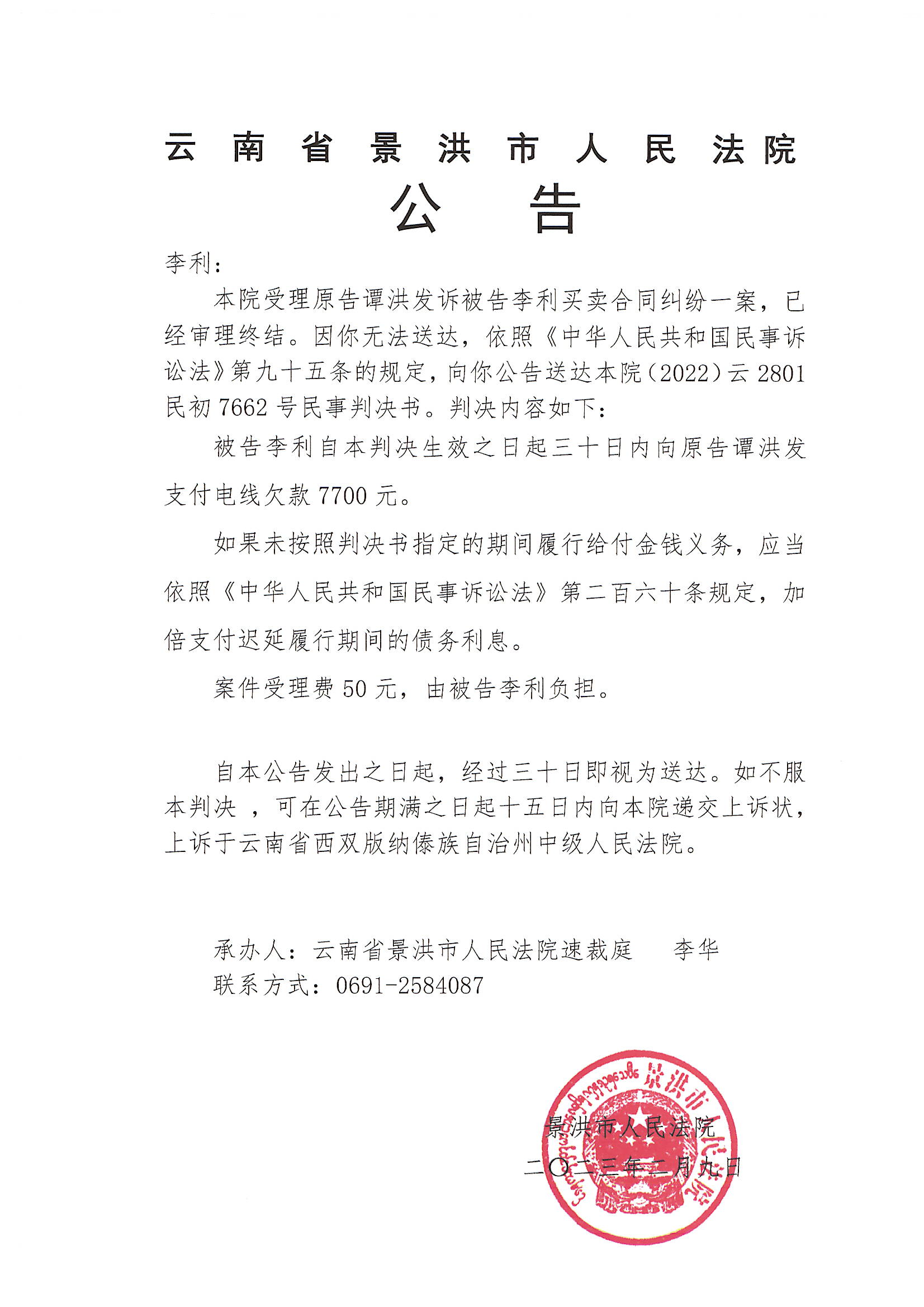 李利(判决公告)
