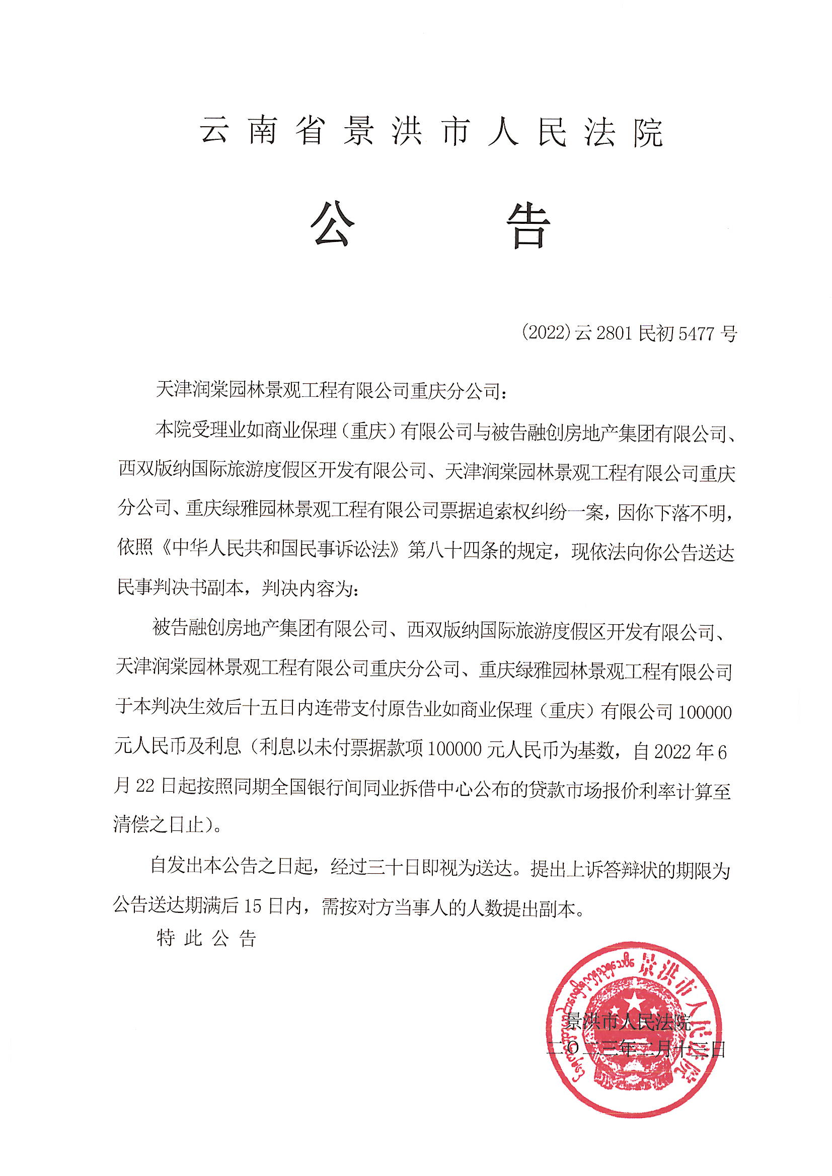 天津润棠园林景观工程有限公司重庆分公司(5477判决公告)