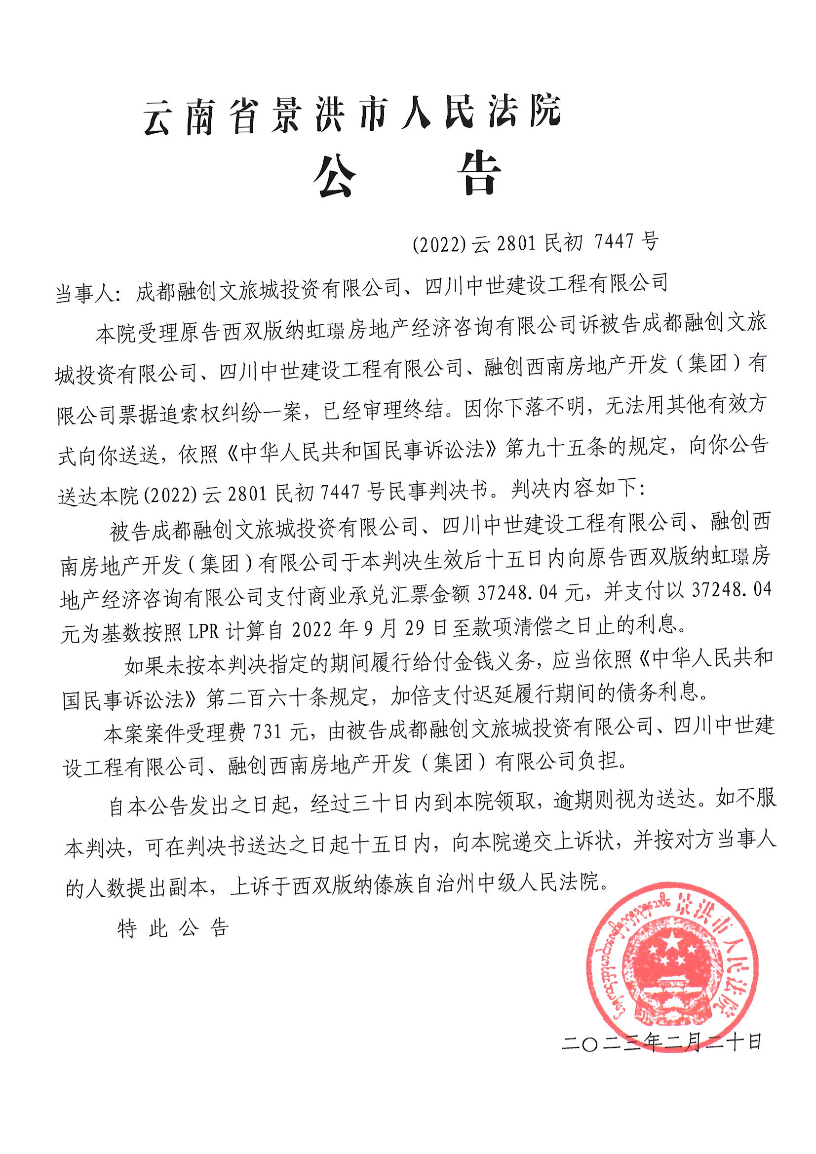 成都融创文旅城投资有限公司、四川中世建设工程有限公司(判决)