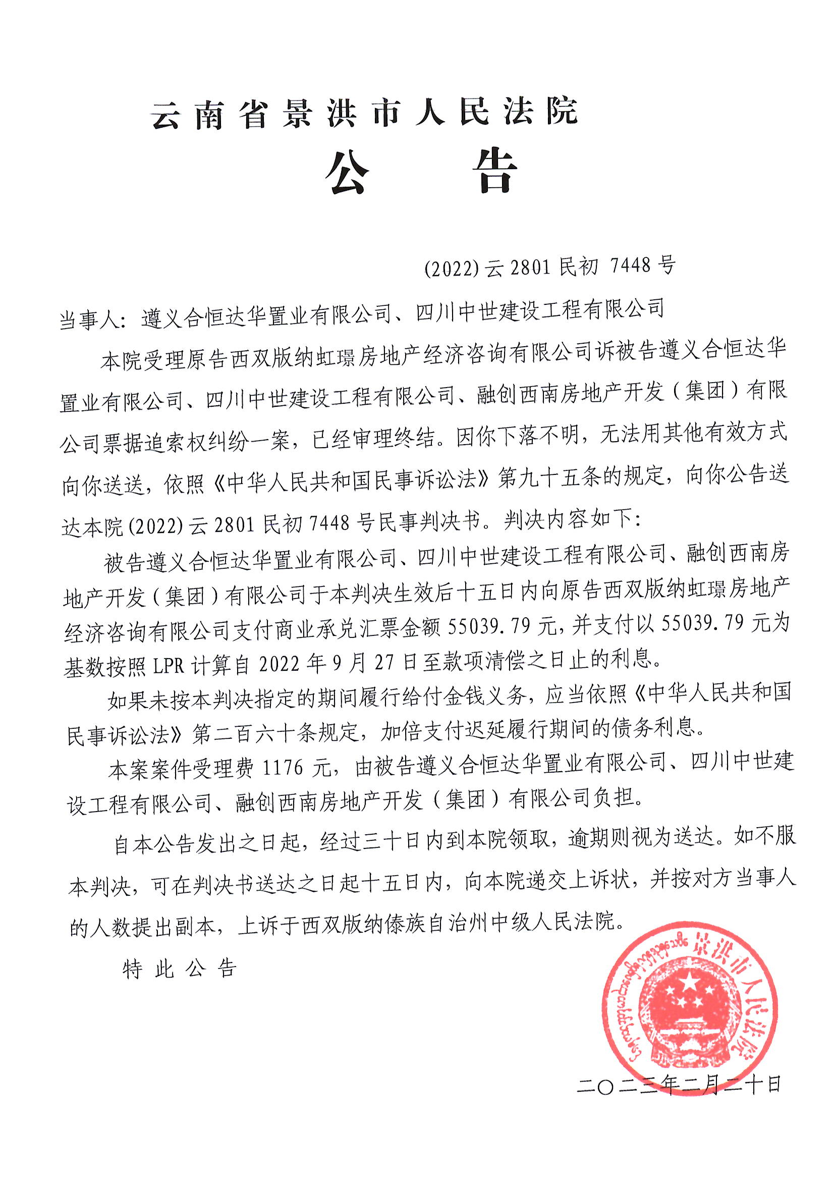 遵义合恒达华置业有限公司、四川中世建设工程有限公司(判决)