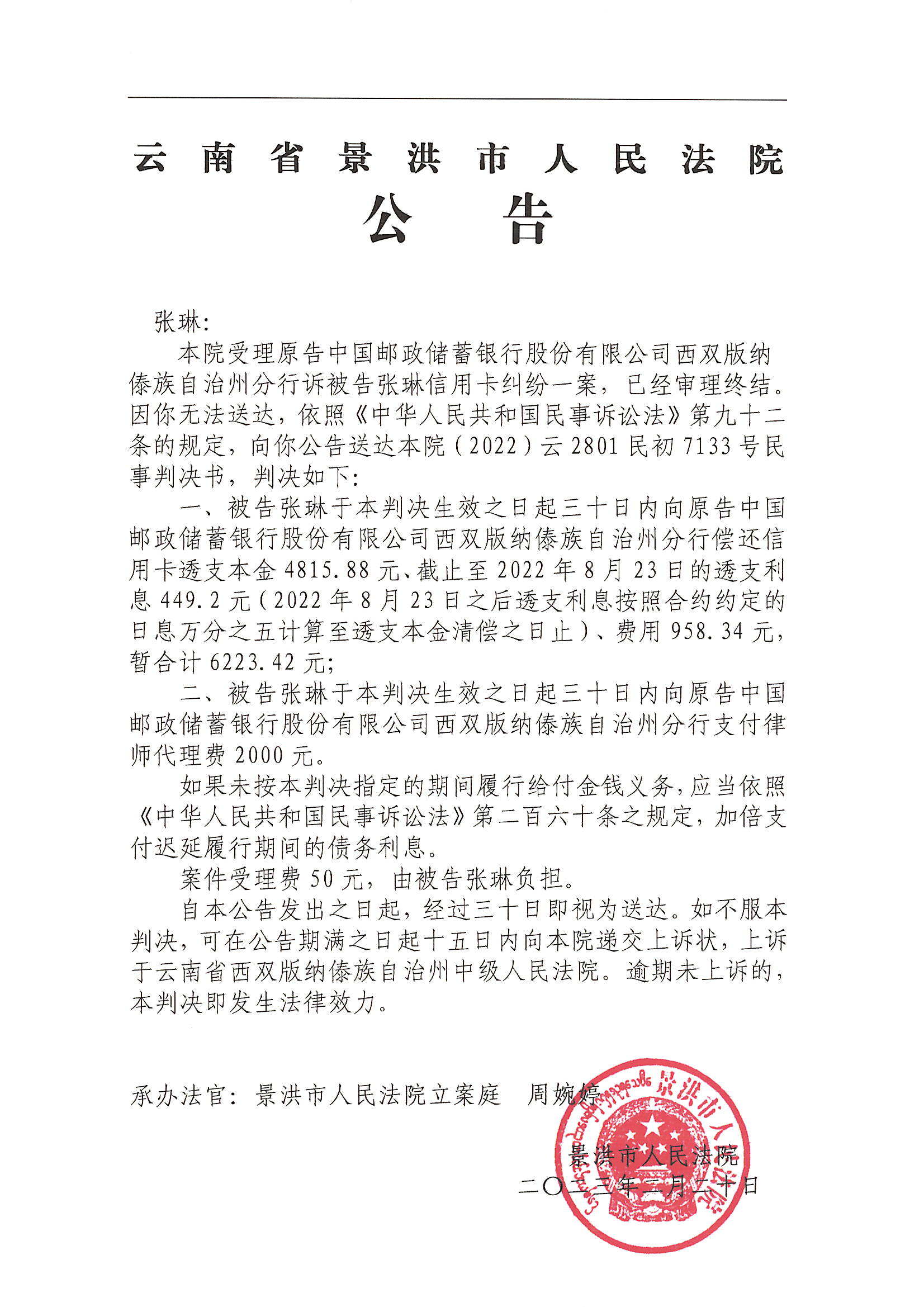张琳(判决公告)