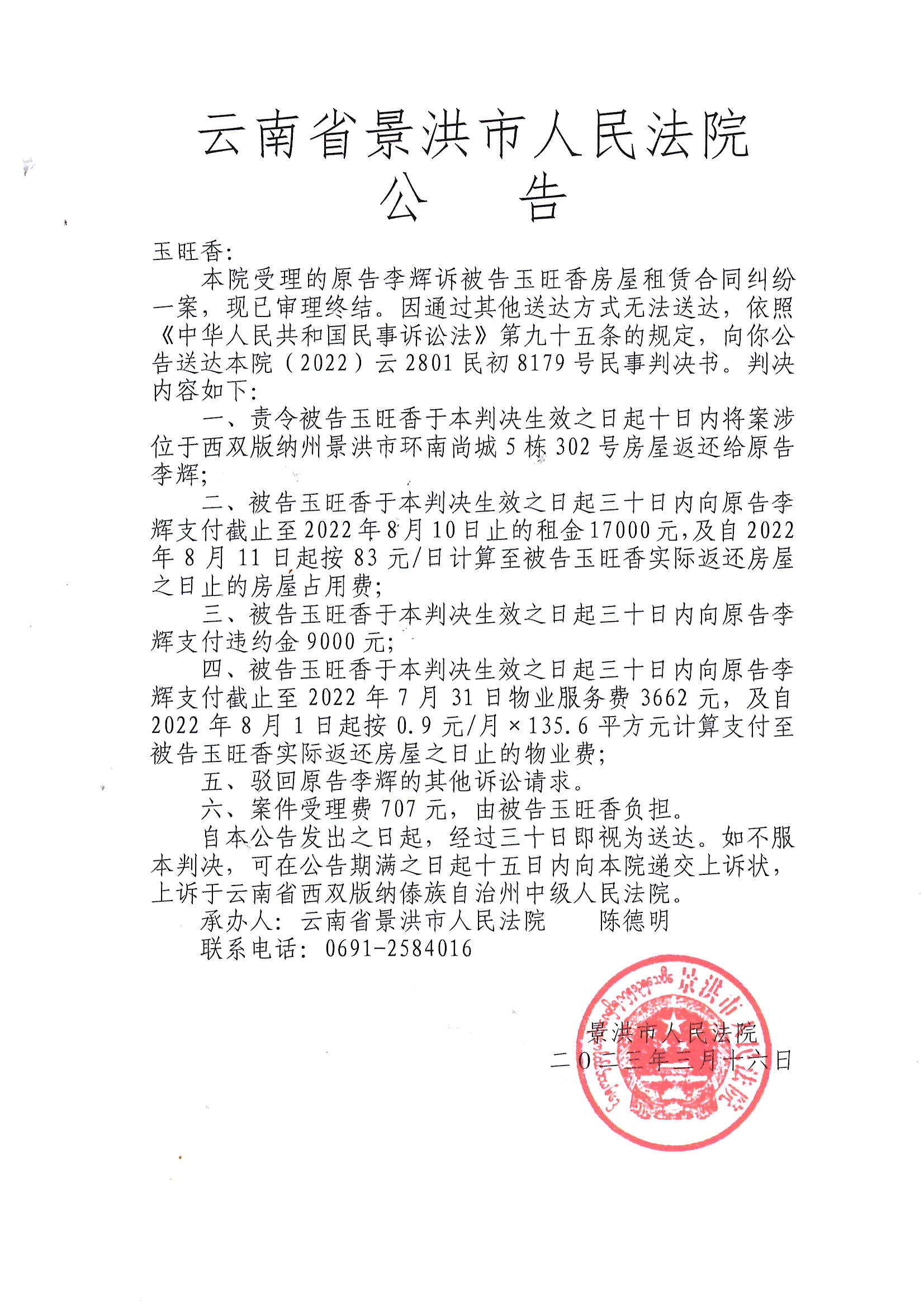 玉旺香判决公告:(2022)云2801民初8179号
