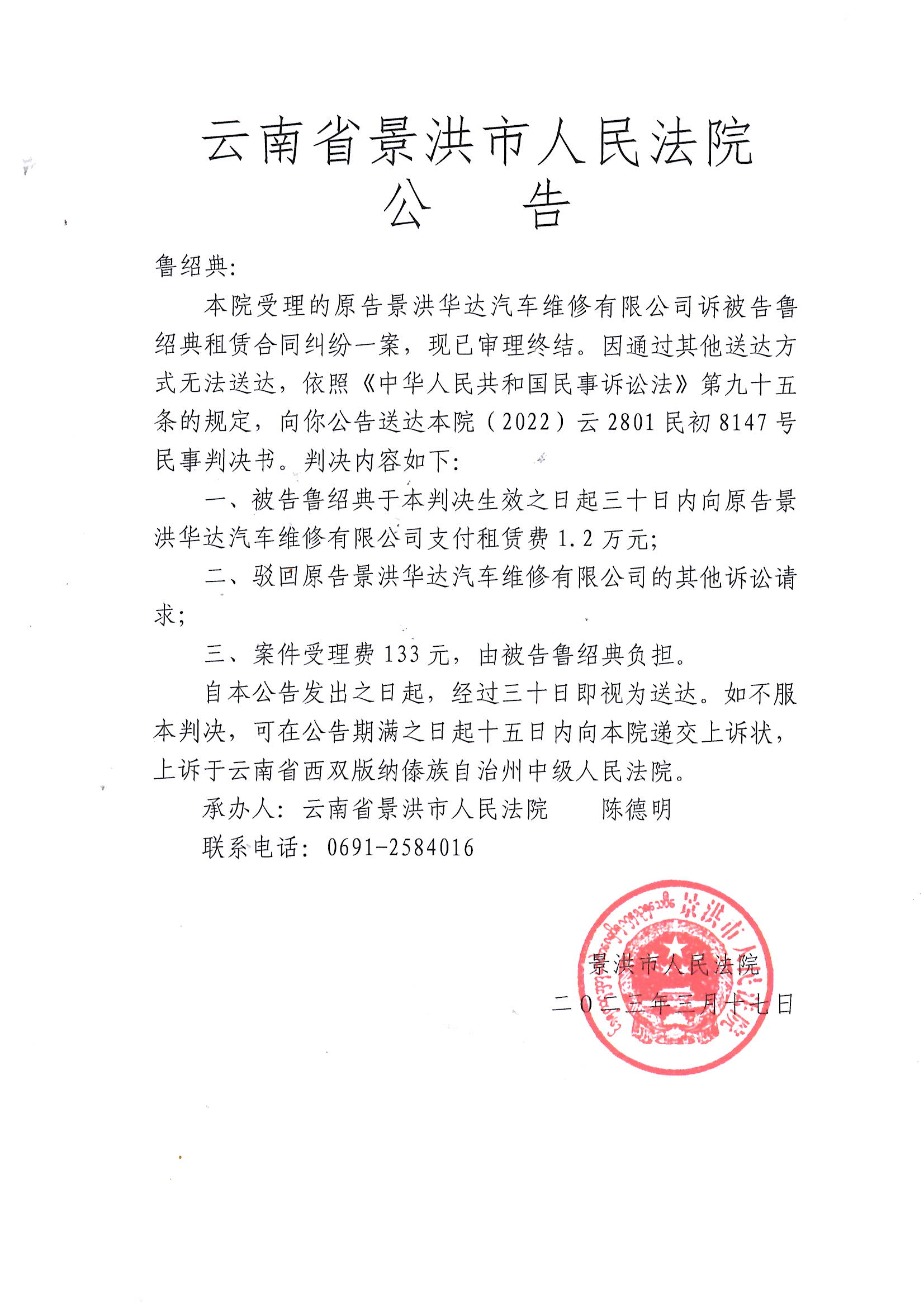 鲁绍典(判决公告):(2022)云2801民初8147号