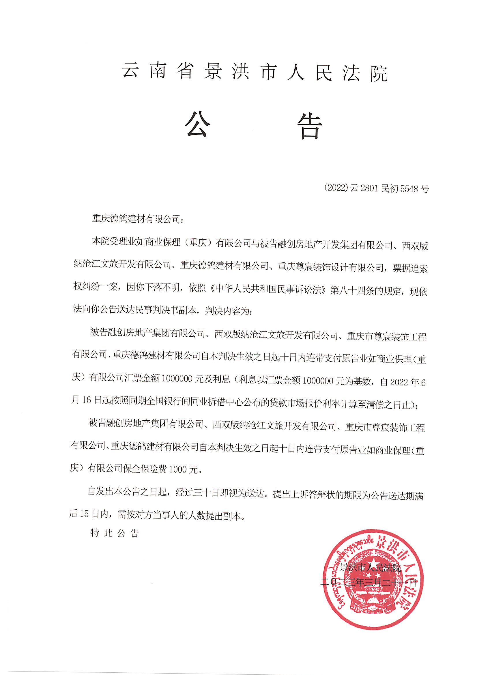 重庆德鸽建材有限公司(判决公告)