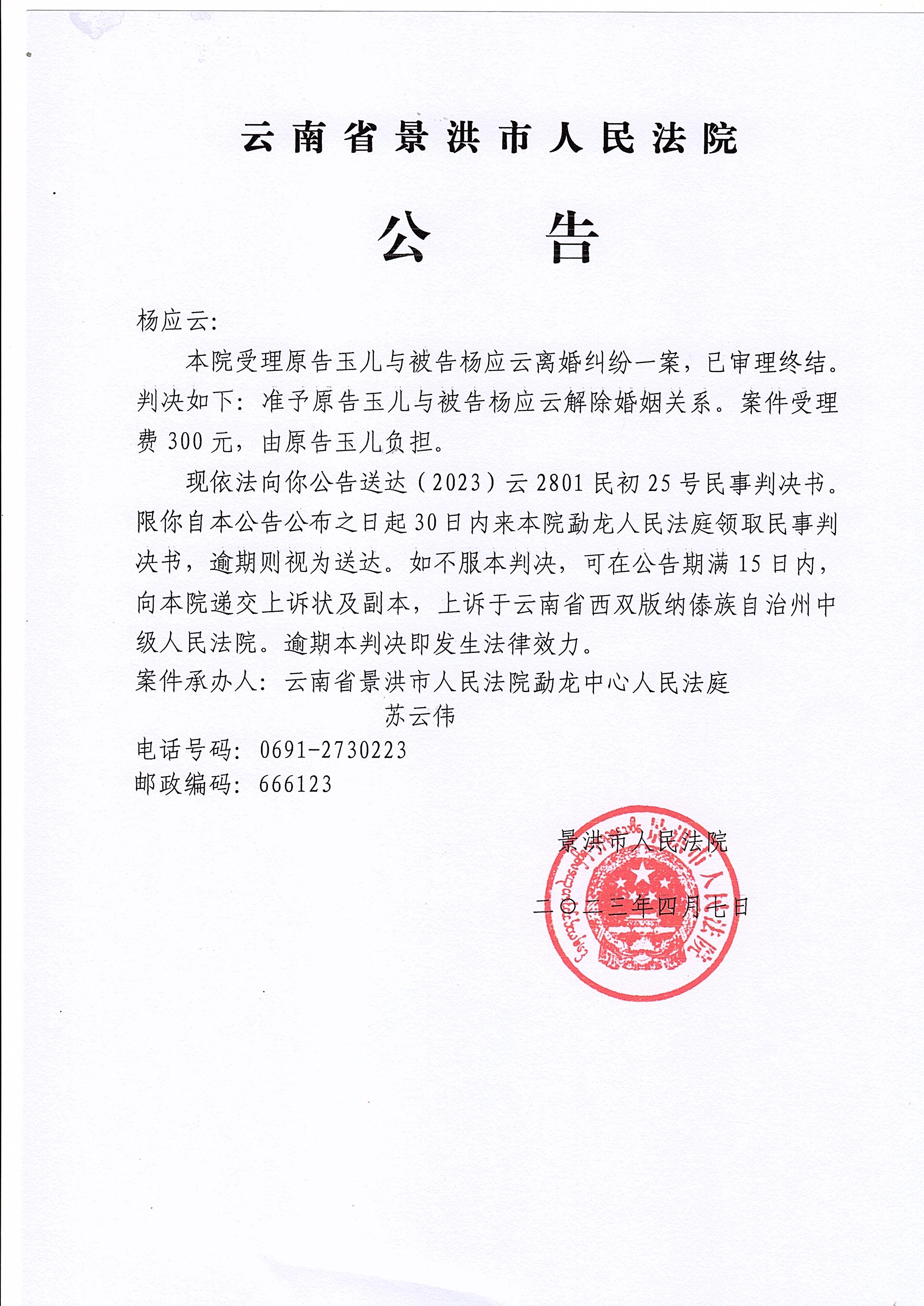 杨应云(判决公告)