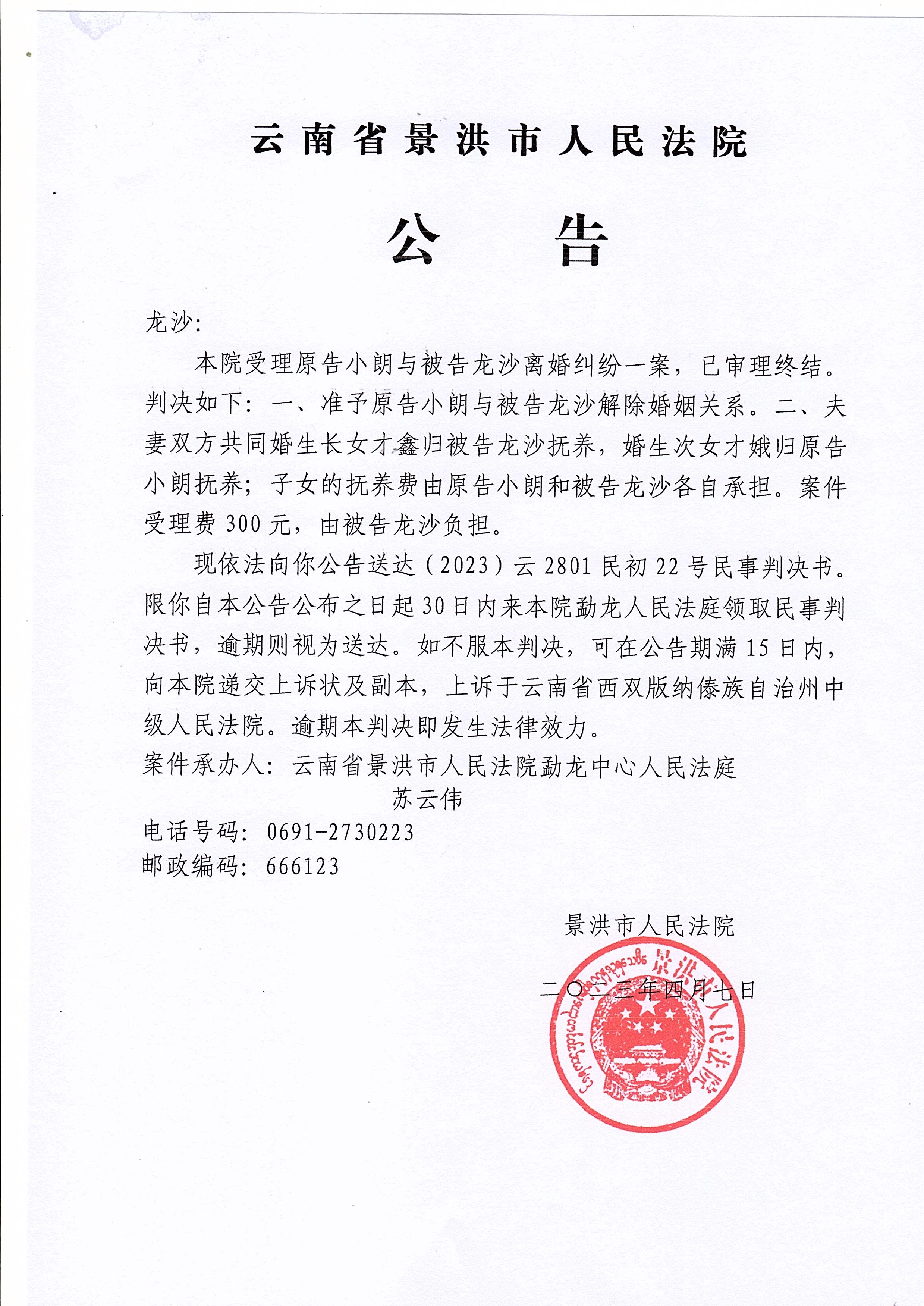 作者 :景洪市人民法院勐龙人民法庭 来源:本站原创 访问次数 :
