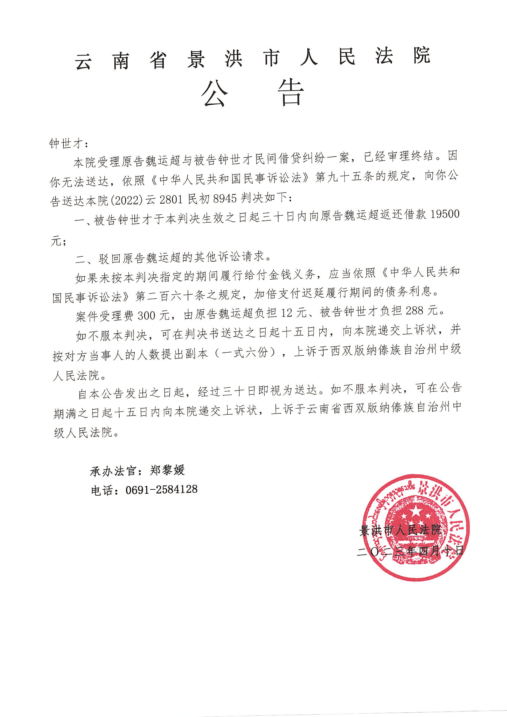 钟世才(判决公告 )