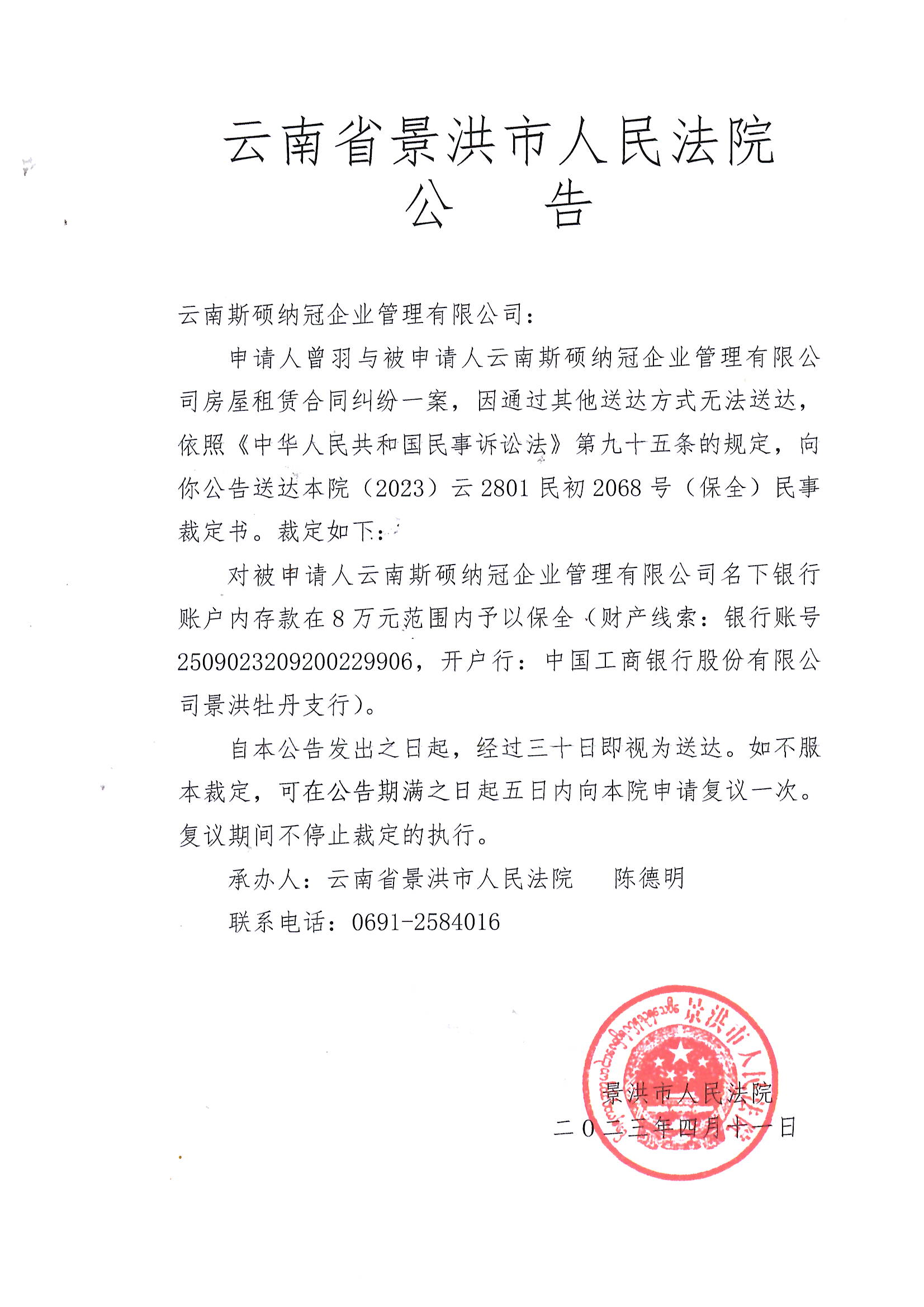 云南斯硕纳冠企业管理有限公司2023-2068号(保全)