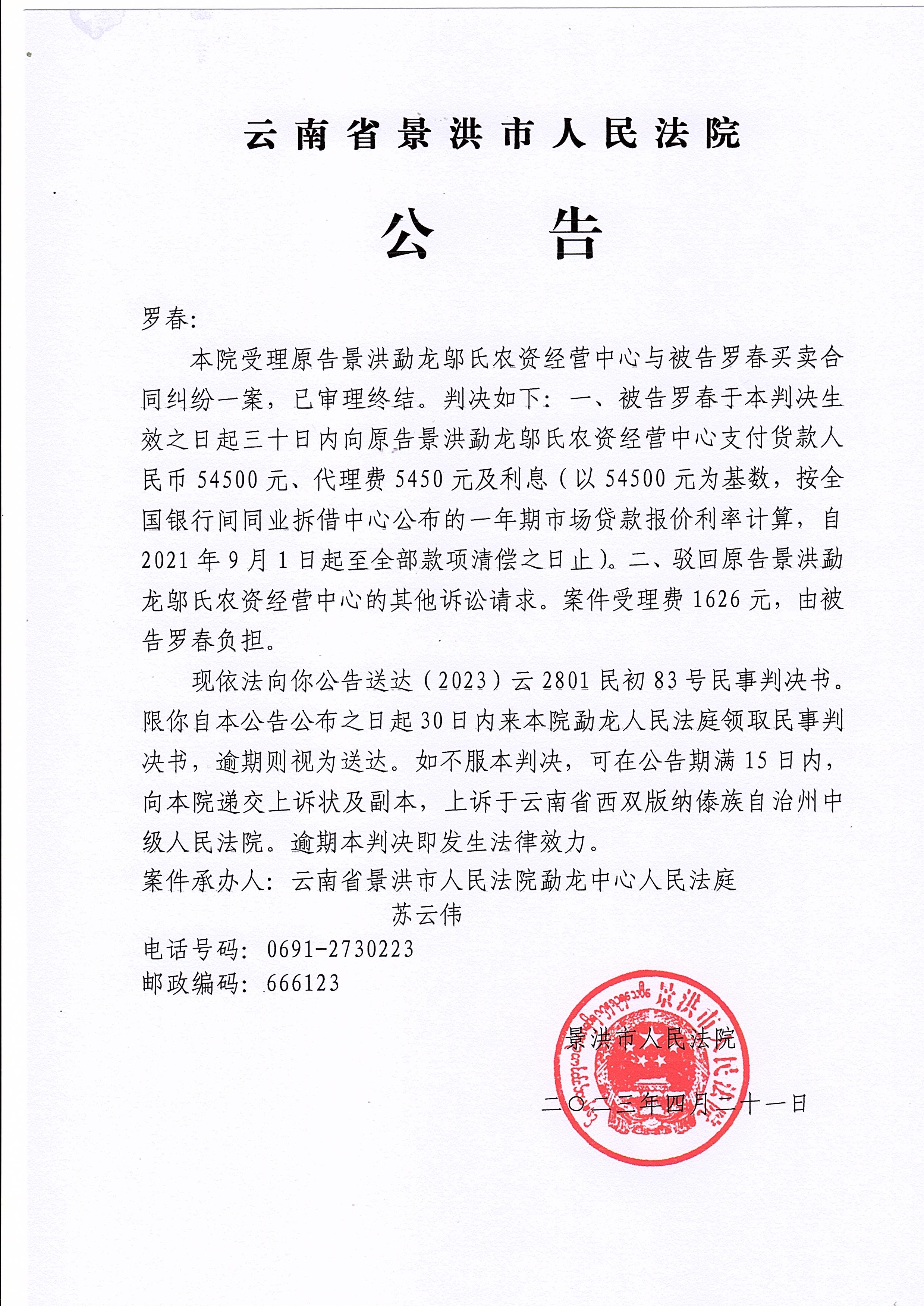 作者 :景洪市人民法院勐龙人民法庭 来源:本站原创 访问次数 :