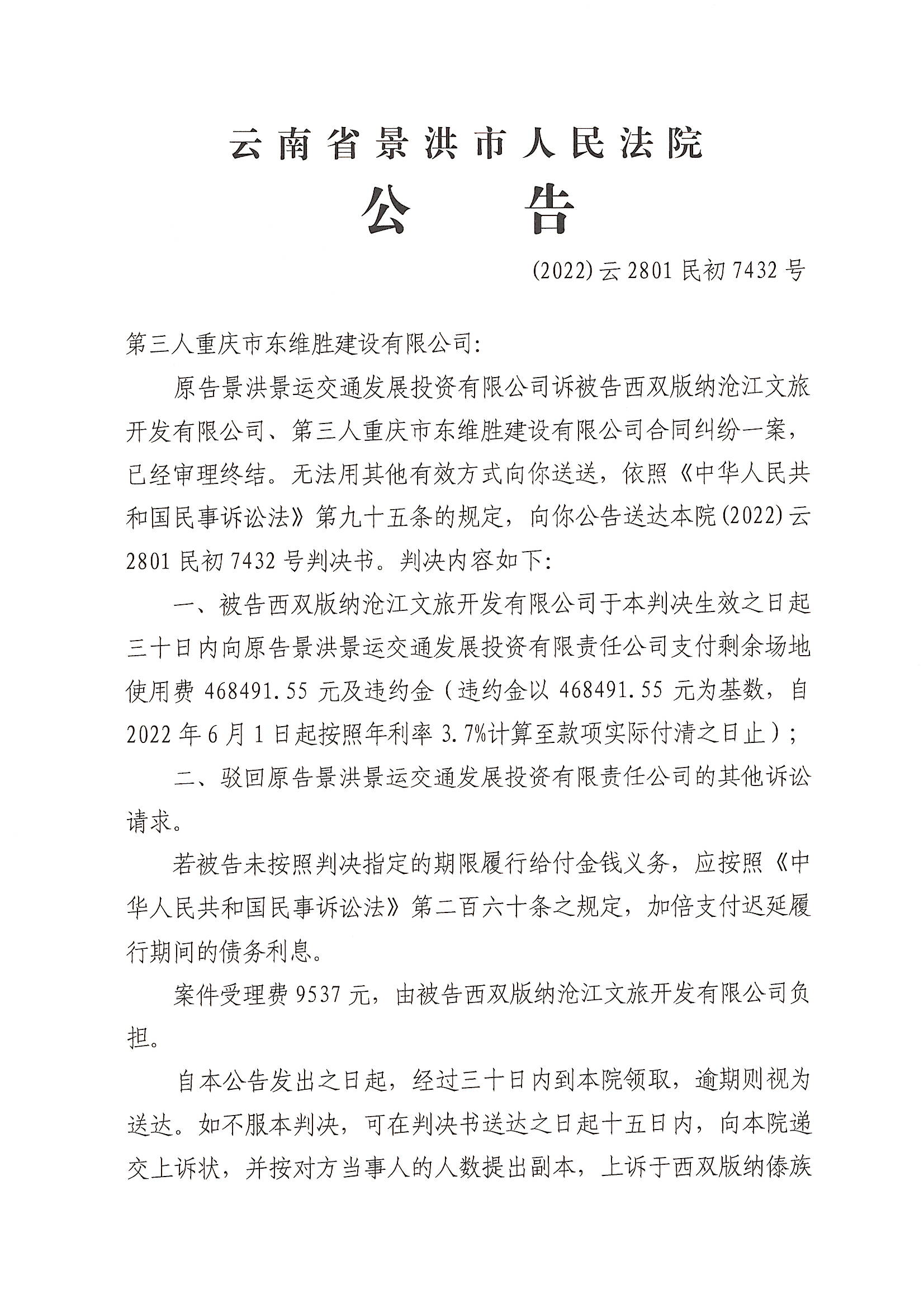 重庆市东维胜建设有限公司(2022)7432判决公告