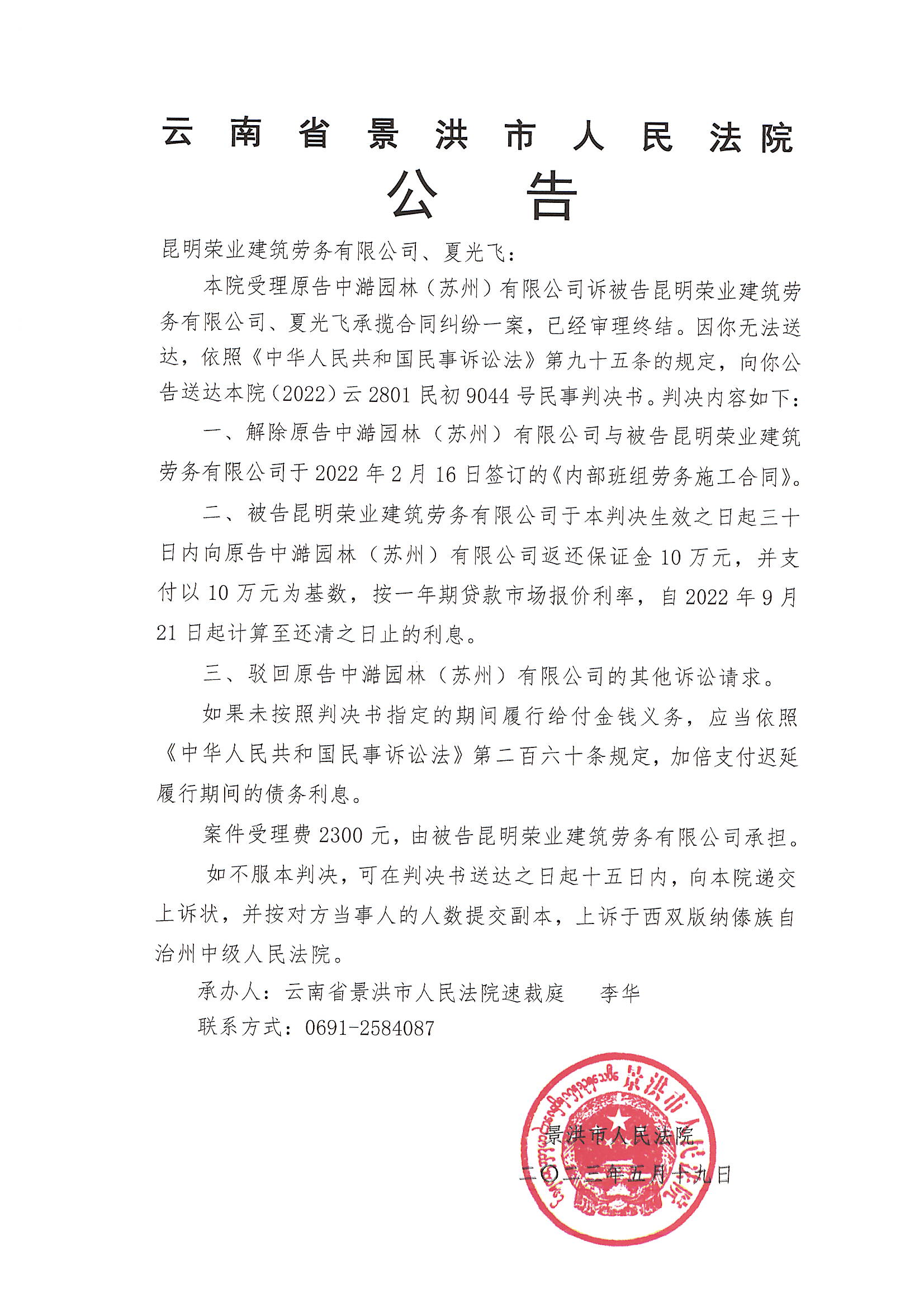 昆明荣业建筑劳务有限公司、夏光飞(判决公告)