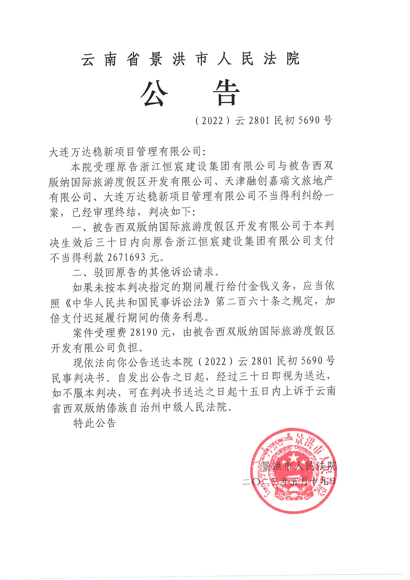 (2022)5690 大连万达稳新项目管理有限公司 (判决公告)