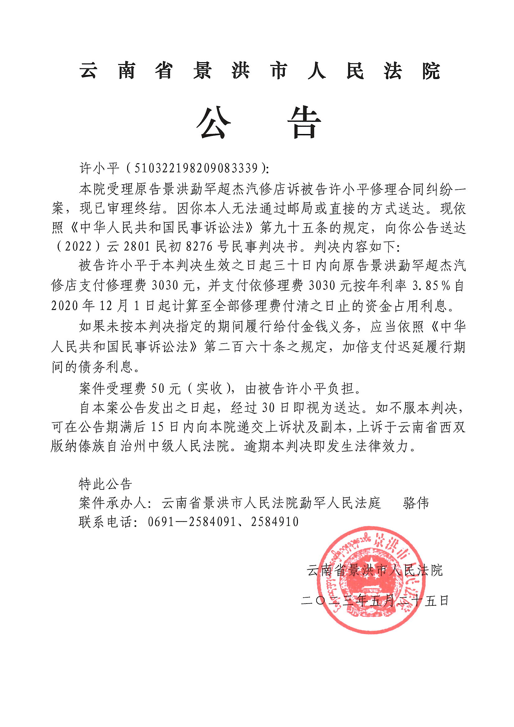 许小平(判决公告)