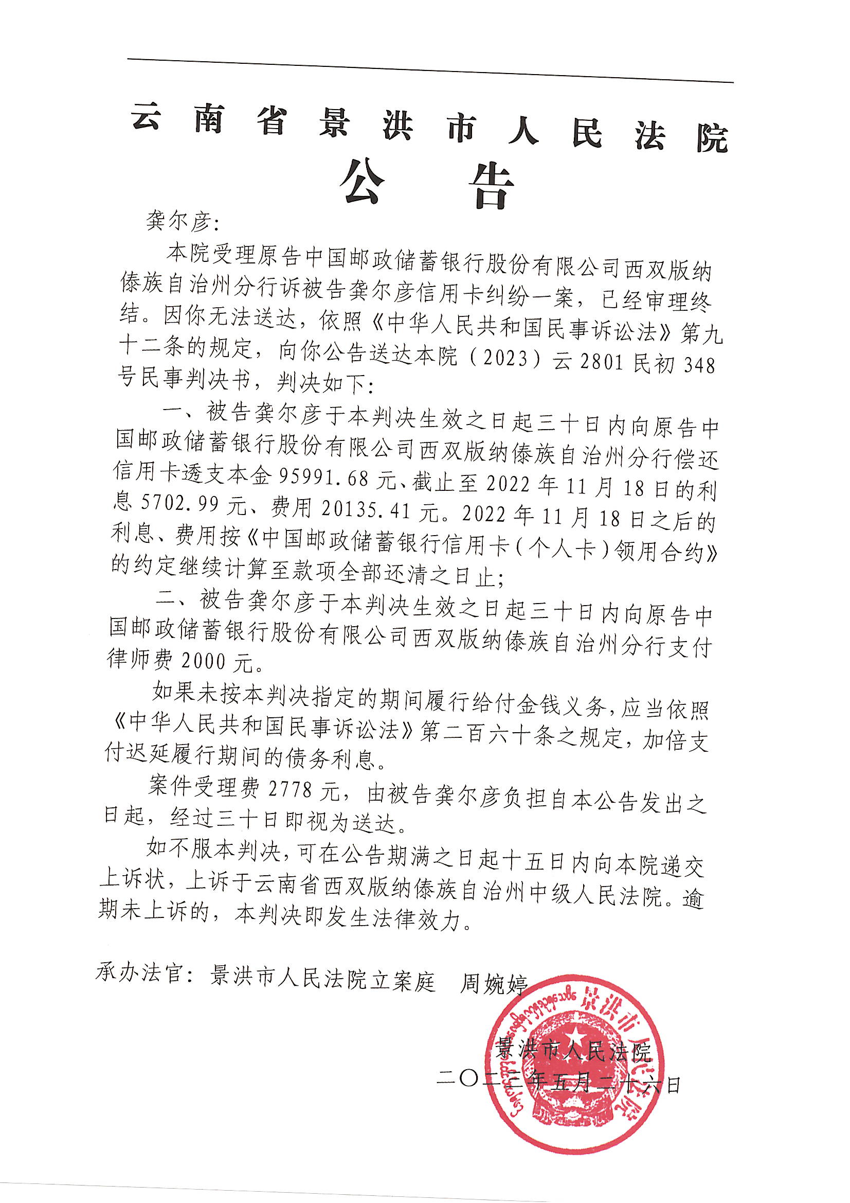 龚尔彦(判决公告)