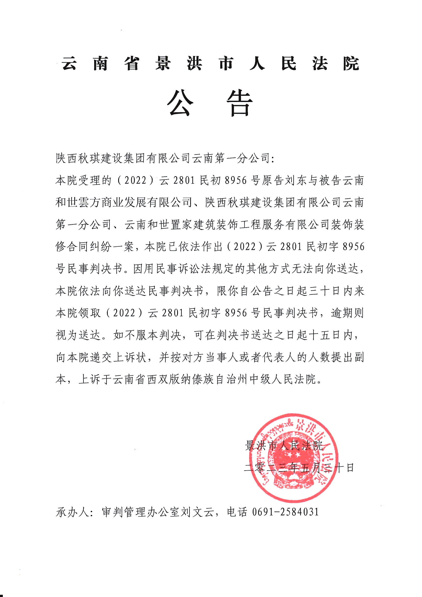 (2022)8956 陕西秋琪云南第一分公司 判决