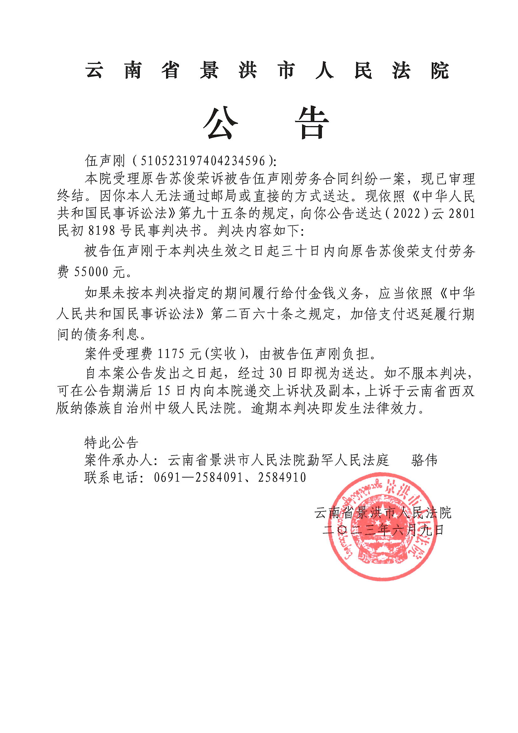 8198伍声刚判决书公告