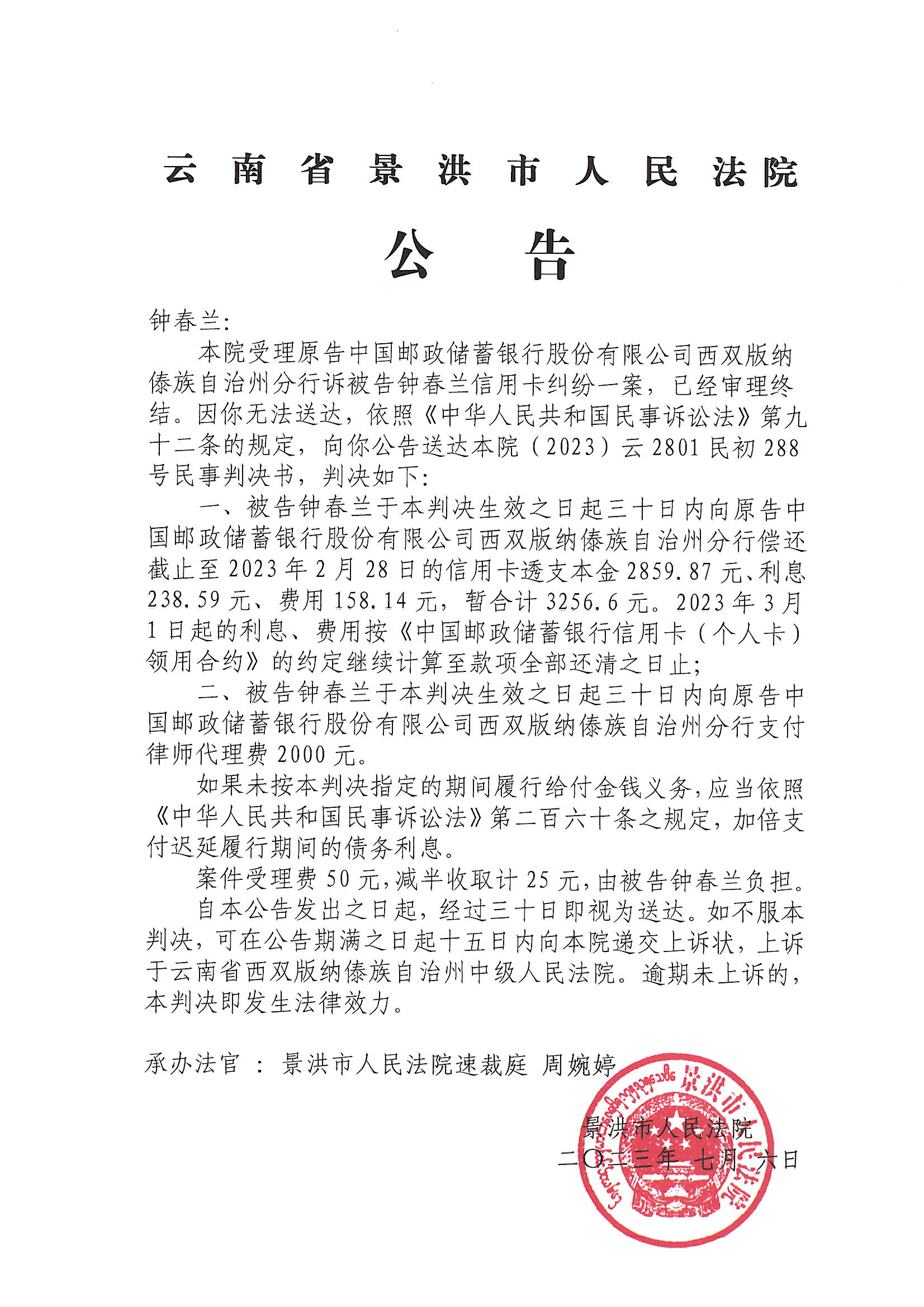 钟春兰(判决公告)