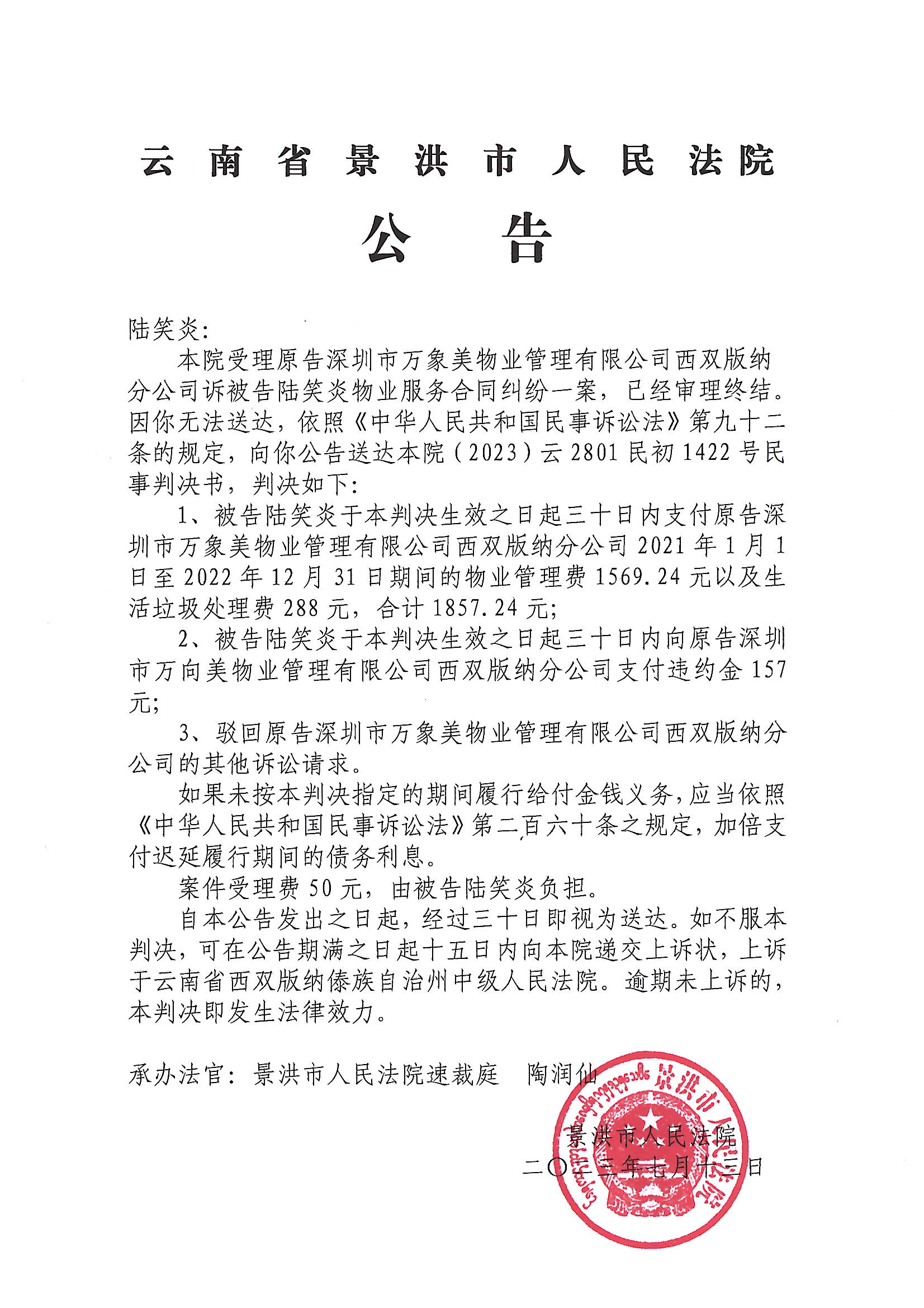 陆笑炎(判决公告)