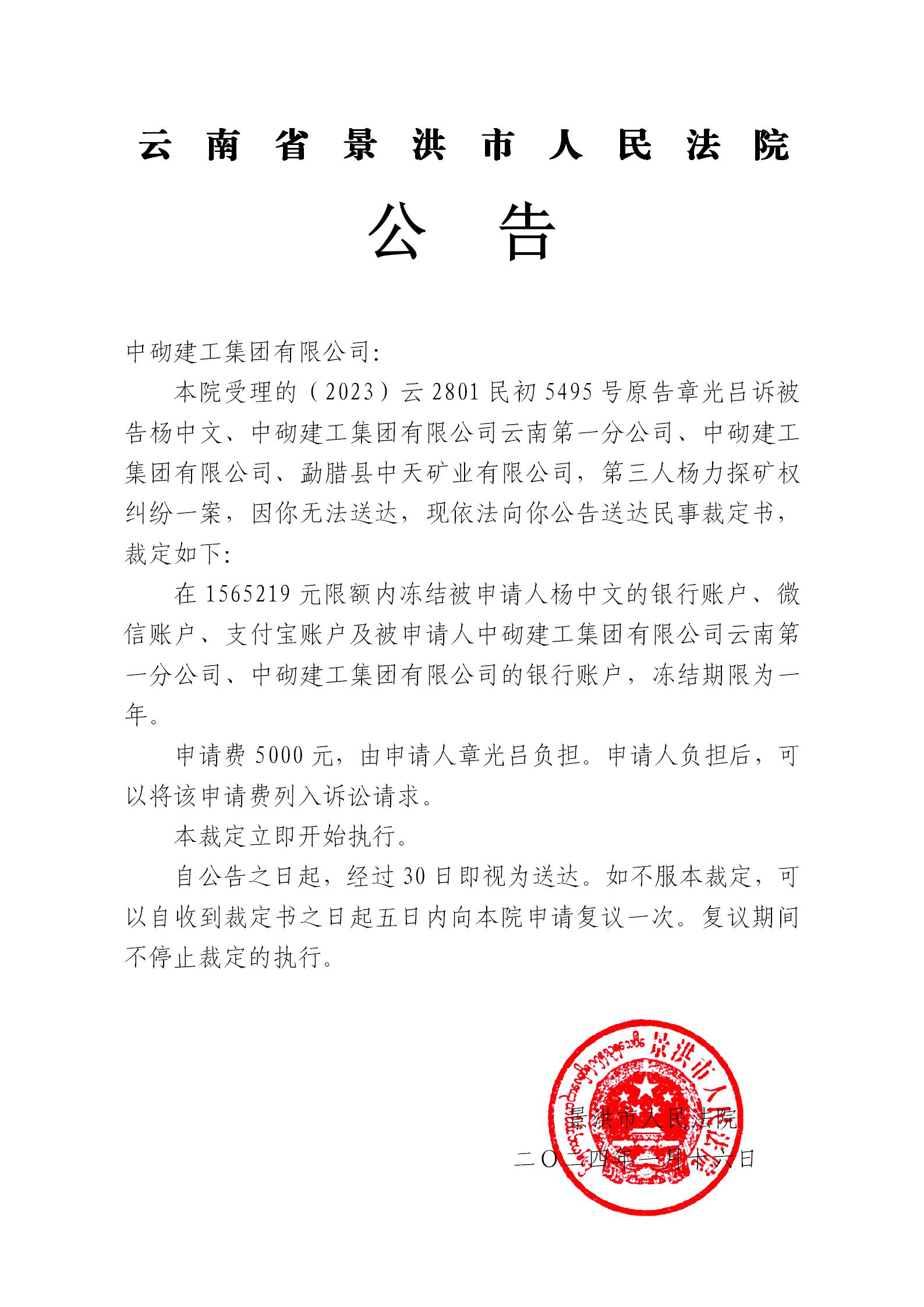 中砌建工集团有限公司(保全裁定公告)