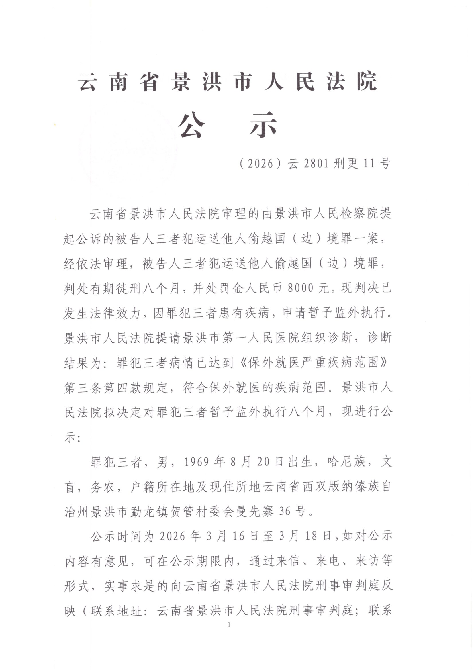 罪犯岩叫犯运送他人偷越国境罪(暂予监外执行)