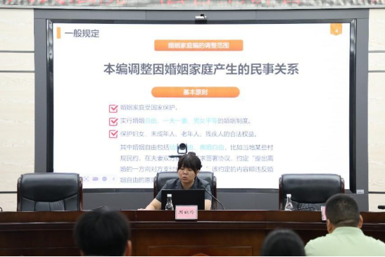授课过程中,周婉婷法官围绕民法典婚姻家庭编在司法实践中的运用,结合自身丰富的审判实践经验,对婚姻家庭编的重点法条、立法精神进行了系统梳理和解读,并通过典型案例剖析,将抽象的法律规定与生动的审判实践紧密结合,使讲解内容既具有理论高度,又富有实践指导意义。