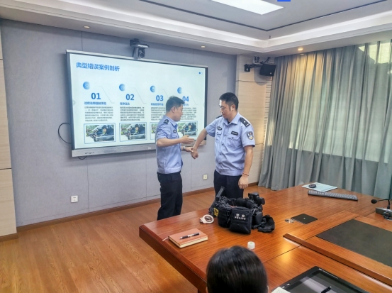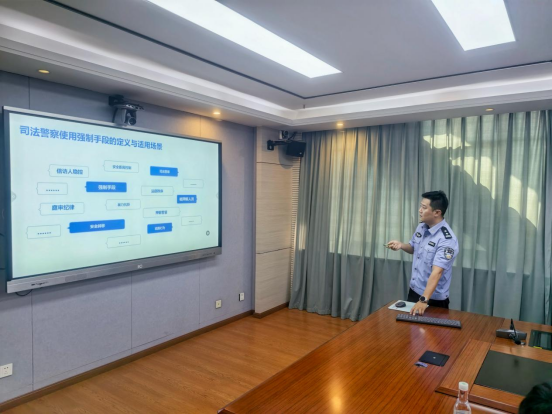 司法警察大队队长则从实战出发,系统讲解了执法现场的程序规范、常见问题及处置策略,重点强调了在不同情境下如何合法、合理、安全地运用强制手段,并涵盖了证据固定、现场控制及责任追溯等全流程要点,有效提升了干警在复杂现场的情境判断与依法处置能力,为强制力的精准、规范适用提供了坚实支撑。