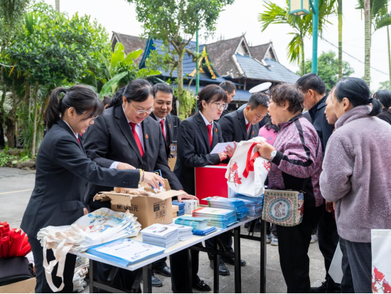 活动紧扣基层群众法治需求和关注热点,通过发放普法资料、设立咨询台、以案释法等多种形式展开。干警们用通俗易懂的语言,向村民宣讲《中华人民共和国宪法》作为国家根本大法的地位和作用,阐释公民的基本权利与义务。同时,干警们结合边境地区特点和审判工作实际,设计了“法律猜猜猜”趣味游戏,将常见法律条文、安全提示转化为生活化谜题,吸引村民积极参与,在轻松互动中加深对法律知识的理解与记忆,现场气氛活跃。此外,干警们还深入浅出地讲解防范非法集资、电信网络诈骗等非法金融活动的知识,揭露常见犯罪手法,提升群众风险识别和自我保护能力。
