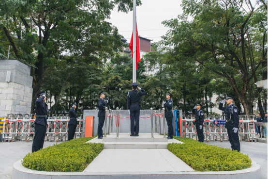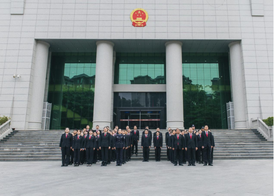 12月4日清晨,全院干警整齐列队,肃立于审判大楼前。伴随着雄壮的国歌声,鲜艳的五星红旗冉冉升起,全体干警面向国旗行注目礼,表达对祖国的无限忠诚和崇高敬意。