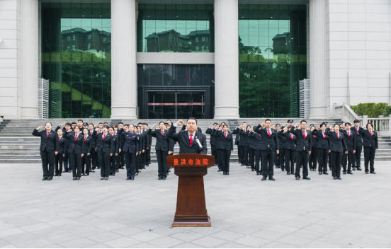 升旗仪式后,在院领导的领誓下,全体干警右手举拳,面向国旗和宪法,庄严宣誓:“我宣誓:忠于中华人民共和国宪法,维护宪法权威,履行法定职责……”铿锵有力的誓言响彻法院,彰显了景洪法院人忠于宪法、恪尽职守、司法为民的坚定信念和决心。