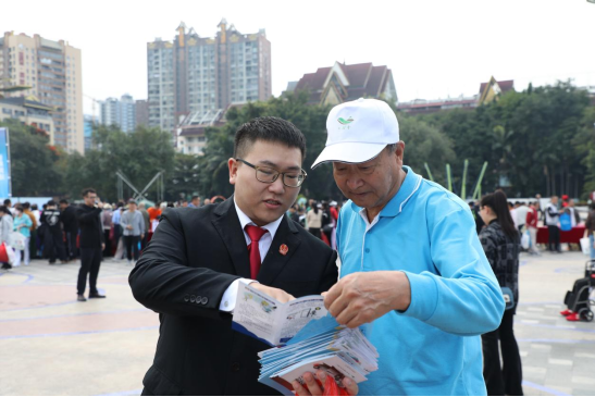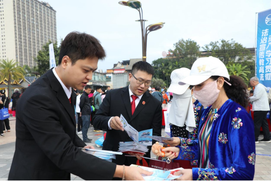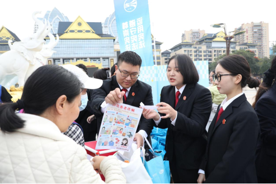 同日上午,4名法院干警组成普法宣传队,走进人流密集的泼水广场,开展了一场别开生面的户外普法活动。