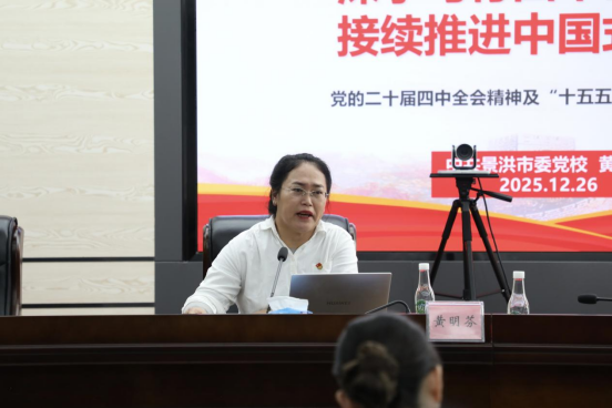 为深入学习贯彻党的二十届四中全会精神,切实把思想和行动统一到党中央决策部署上来。12月26日,景洪市人民法院邀请中共景洪市委党校高级讲师、教务培训办副主任黄明芬老师围绕“深学笃行四中全会精神,持续推进中国式现代化”主题作专题授课。院党组成员、政治部主任段琳瑜主持会议,全院干警参加会议。