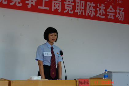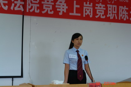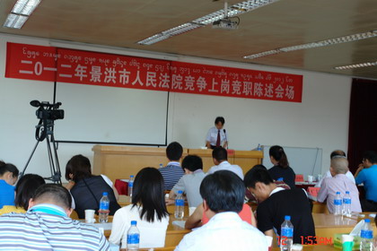 8月11日,在市委组织部的全程指导下,景洪市人民法院14名竞争者分别竞争政治处副主任、监察室主任、执行局副局长、专职审判委员会委员四个职位。每个竞争者都作了介绍自己的工作经历、德才情况,对近年工作实绩、未来工作思路及自身的优势竞职陈述,并回答主评委提出的3个问题。根据竞争者竞职陈述和答题情况,评委组成人员对竞争者进行现场独立评分,然后由计分员在监督、计时员、参会人员的监督下,计算出每个竞争者的竞职陈述成绩和民主推荐票,并交由主评委当场宣布陈述成绩和竞职总成绩。经全院法官和工作人员民主测评后,其中的四名优秀竞争者将上岗履行,成为2012年景洪市人民法院竞争上岗竞职“获胜者”。