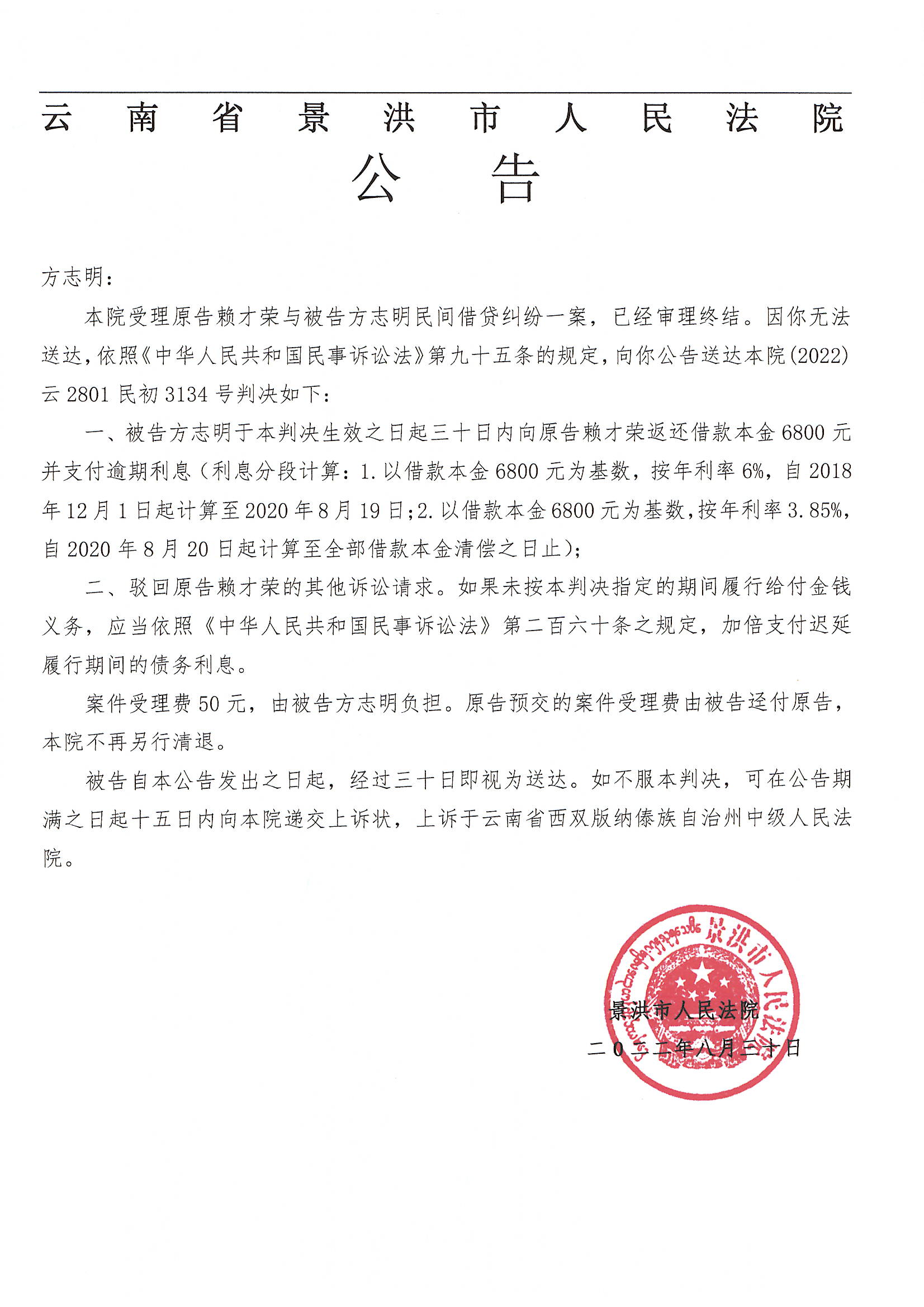 方志明(判决公告)